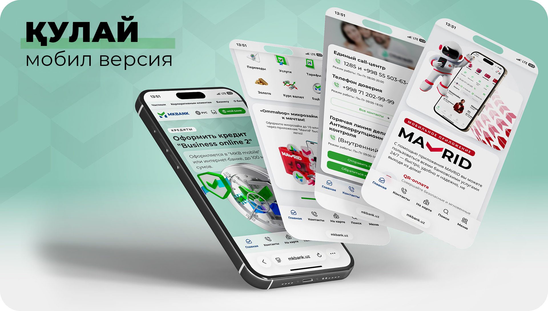 Мобил версиясидан фойдаланиш ҳам қулай: бўлимлар бўйича навигация соддалаштирилган, саҳифалар юкланиши тезлаштирилган ва меню элементлари оптималлаштирилган. HTML5’нинг янги имкониятлари ҳар қандай экран ўлчами учун мослаштирилган дизайн яратишга ёрдам беради, кодлар ва скриптлар эса минималлаштирилган бўлиб, маълумот узатиш юкламасини сезиларли камайтиради. Бу мобил қурилмаларда сайтдан фойдаланишни анча қулайлаштиради.