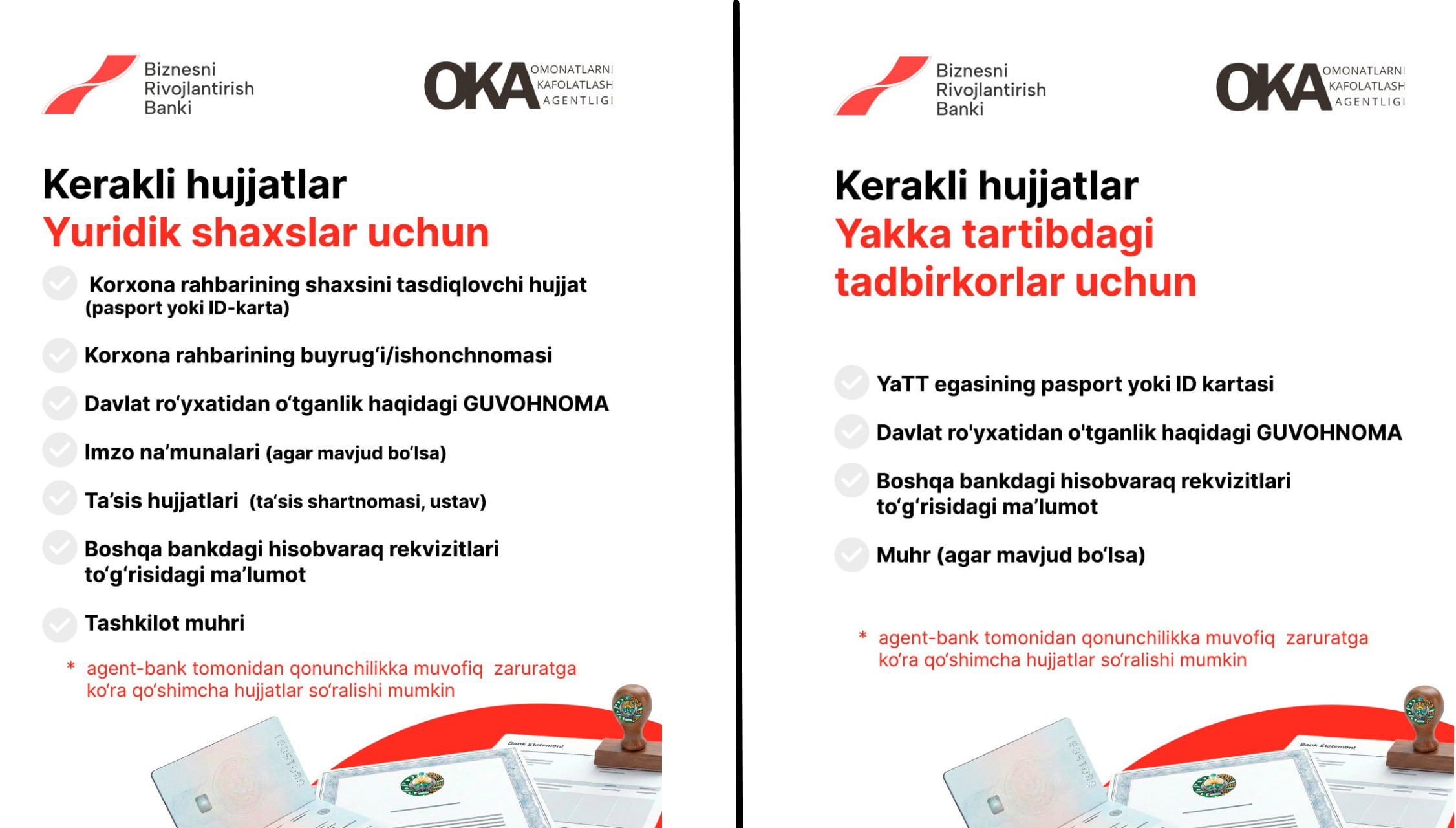 Тегишли саволларни Омонатларни кафолатлаш агентлиги (555-500-500) ёки Бизнесни ривожлантириш банки (1254) ишонч телефонига юбориш мумкин.