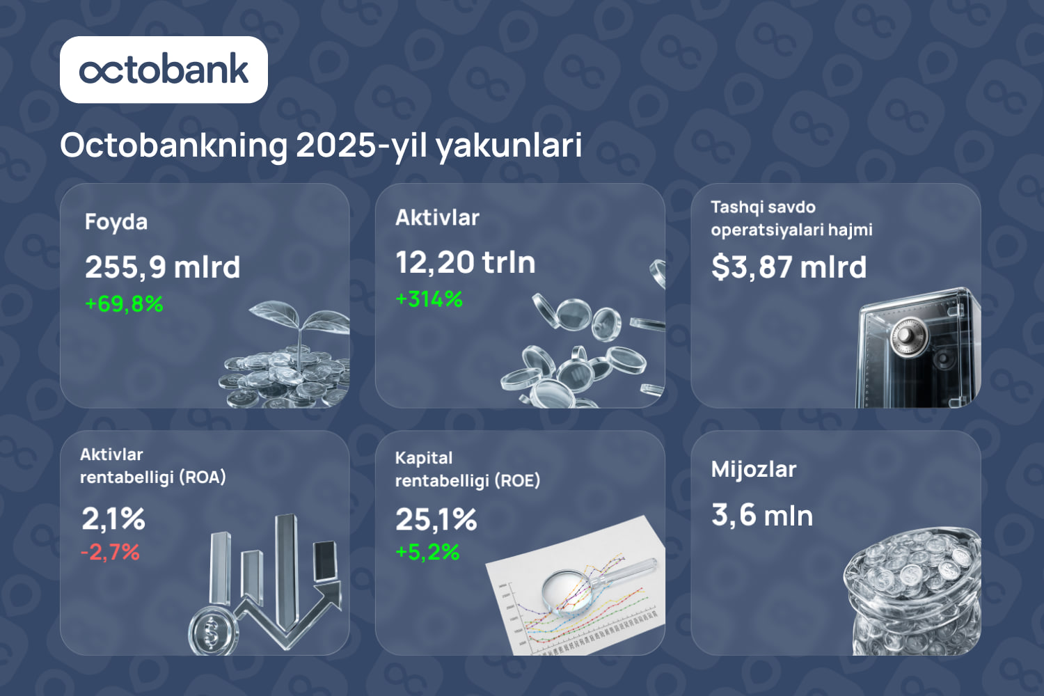 “2025 йил Octobank учун барқарор ўсиш ва рақамли трансформация йили бўлди. Биз илғор ечимларни жорий этдик, халқаро иштирокимизни кенгайтирдик, мижозларнинг ҳақиқий эҳтиёжларига йўналтирилган ҳолда хизматларни ривожлантирдик. 2026 йилда ҳам Ўзбекистон ва хориждаги бизнес ва мижозлар учун рақамли экотизимни ривожлантиришни давом эттирамиз ”, – деди Octobank бошқаруви раиси Искандар Турсунов.