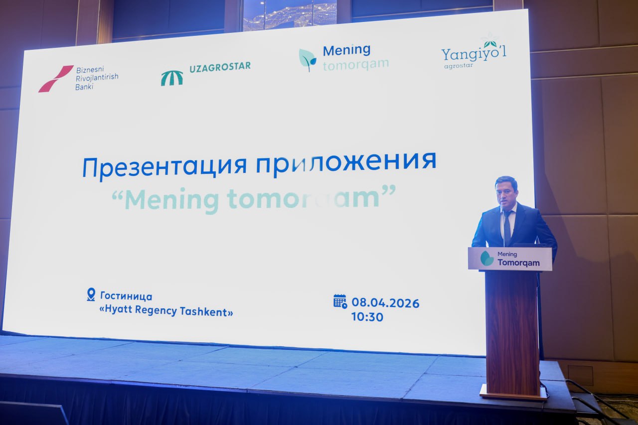 2026 йил 8 апрель куни «Бизнесни ривожлантириш банки» АТБ ҳамда "Uzagrostar xolding" компанияси ҳамкорлигида ишлаб чиқилган "Mening tomorqam" ягона хизмат кўрсатиш ва мониторинг қилиш платформасининг тақдимоти бўлиб ўтди.